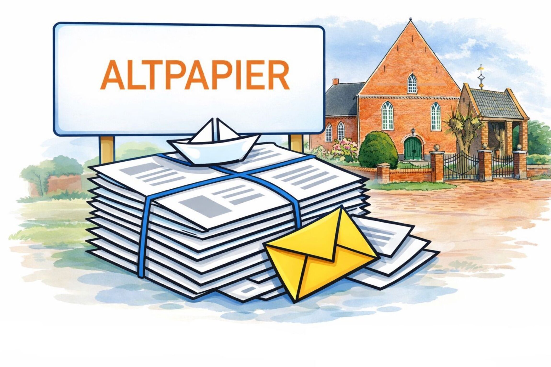 Wir sammeln wieder Altpapier. Die Container stehen auf dem Parkplatz gegenüber dem Gemeindehaus. Mit den Einnahmen finanzieren wir unter anderem auch unser Patenkind. Danke für eure Spende.