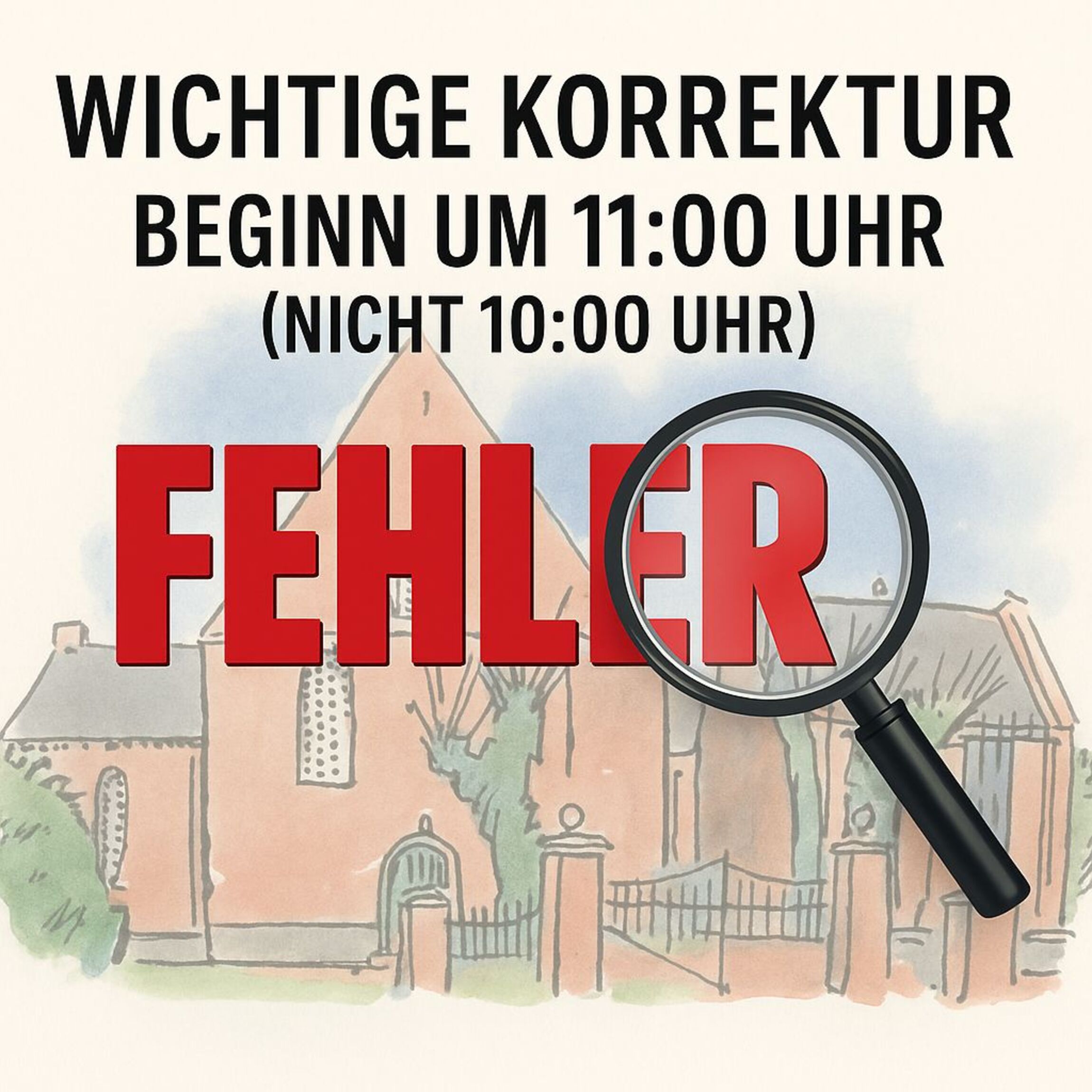 Der Gottesdienst beginnt um 11:00 Uhr und nicht um 10:00 Uhr.