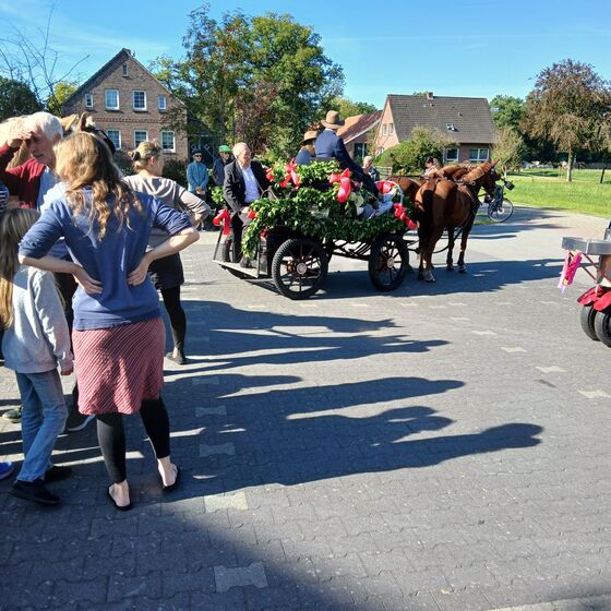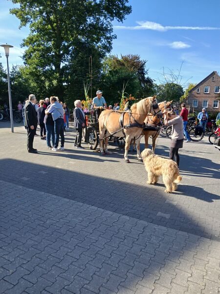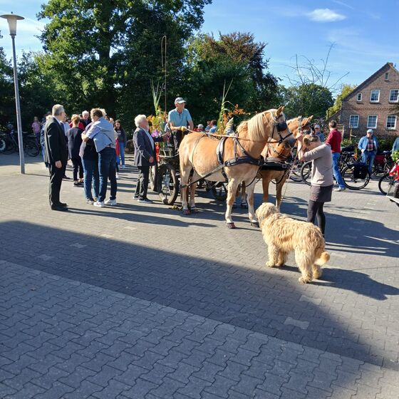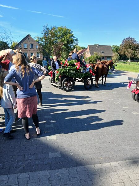 Großefehn - Gemächlich biegt die Kutsche von der Lindenstraße in Strackholt zum Gemeindehaus der evangelischen Kirchengemeinde ab. Ihr folgt ein Fahrradkorso, der klingelnd sein Eintreffen ankündigt. Als Pastor Thomas Lehmann von der Kutsche steigt, spielt der Posaunenchor. Es ist eine Amtseinführung, wie sie wahrscheinlich schon seit Jahrhunderten in Ostfriesland Brauch ist: In der Pferdekutsche haben die beiden Kirchengemeinden Bagband und Strackholt ihren neuen Pastor eingeholt.