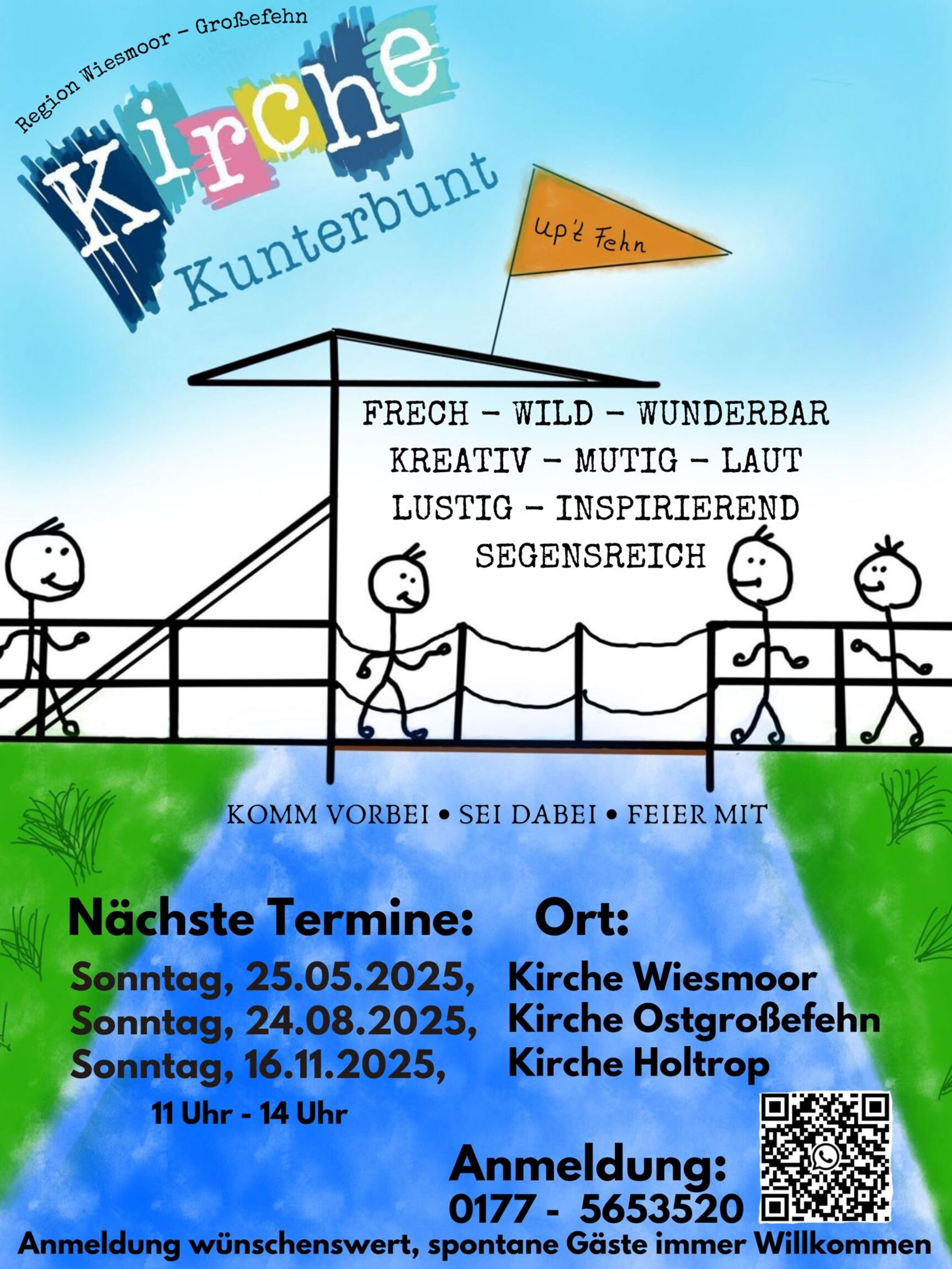 Kirche Kunterbunt am 27.05.2025 in Wiesmoor Herzliche Einladung nach Wiesmoor. In Strackholt findet kein Gottesdienst statt.