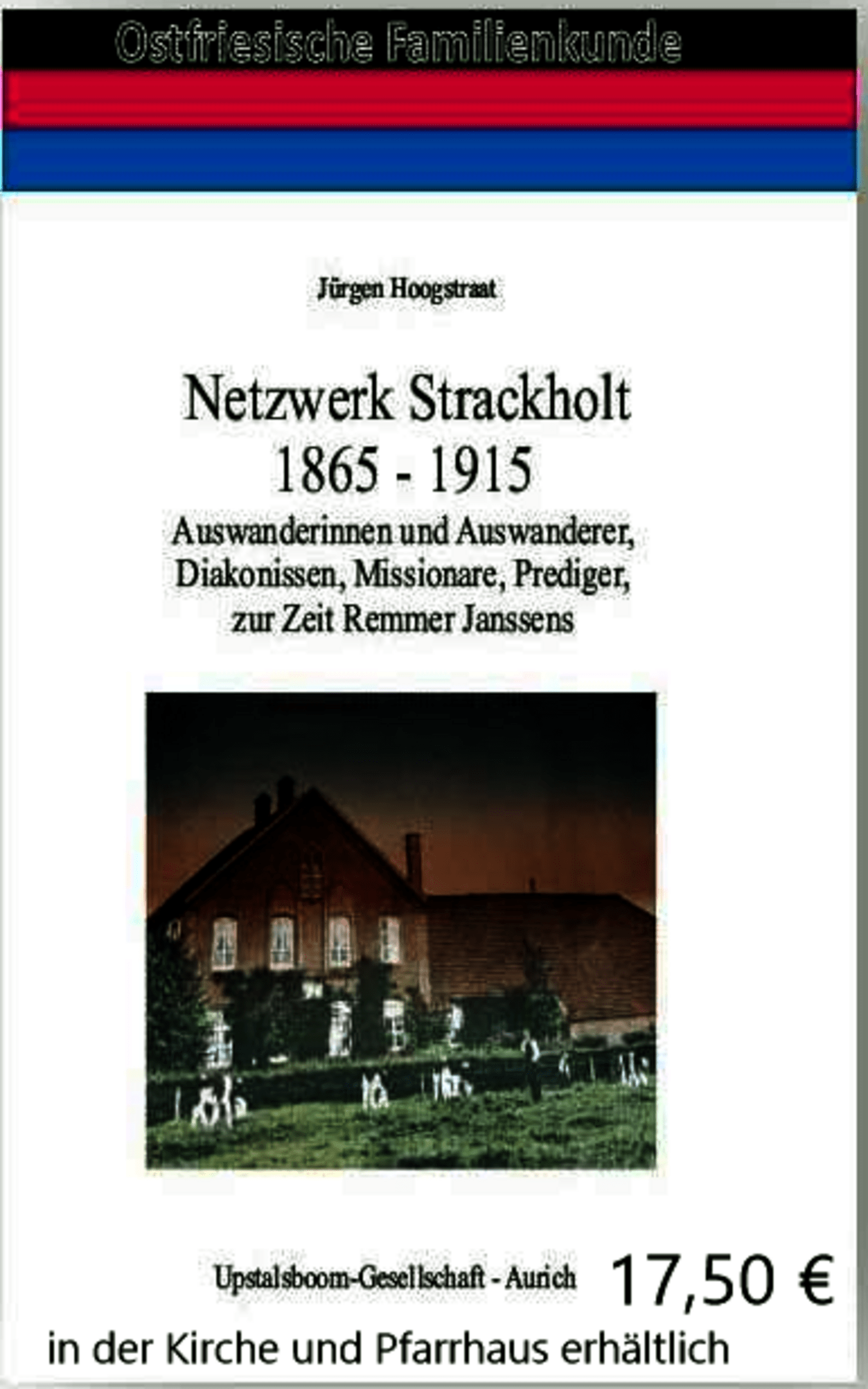 Die lutherische Missionsschule in Strackholt bot Auswanderern einst die Fahrkarte in die Neue Welt. Dort wurden Ostfriesen über das Netzwerk Strackholt (1865-1915) in alle Herren Länder geschickt. Der Victorburer Pastor Jürgen Hoogstraat hat viele Jahre die Schicksale und Hintergründe erforscht und nun in einem Buch vorgelegt. Es trägt den Titel „Netzwerk Strackholt - Auswanderinnen und Auswanderer, Diakonissen, Missionare, Prediger zur Zeit Remmer Janssens“. Ein ostfriesisches Dorf prägte in 50 Jahren die Missionstätigkeit in einem „weltumfassenden Netzwerk“, teilt Helmut Fischer, Vorsitzender der Upstalsboomgesellschaft für Familienforschung in Aurich mit.