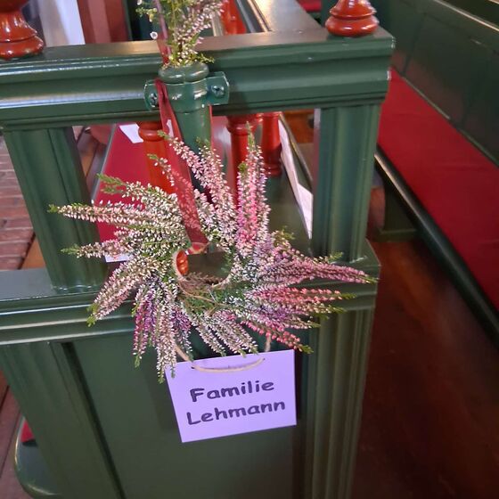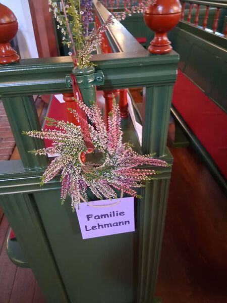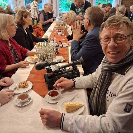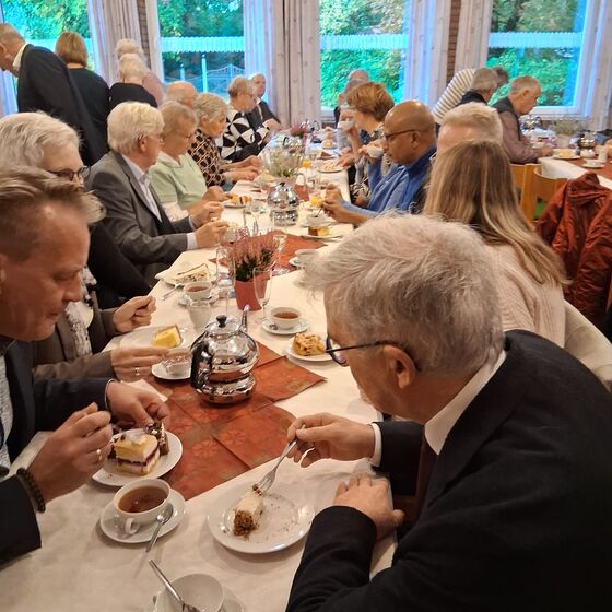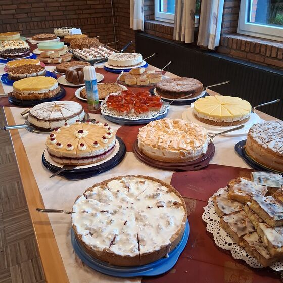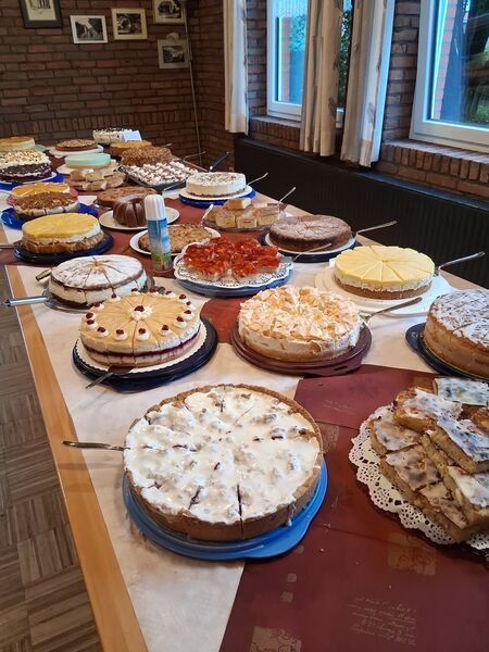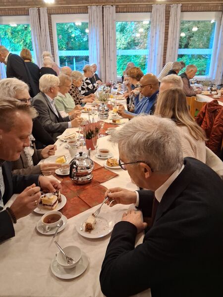 Nach dem Gottesdienst lud die Gemeinde zu einem Sektempfang und einer großen Kuchentafel ins Gemeindehaus ein, bei der viele Grußworte gesprochen wurden.