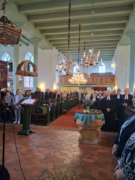 Der feierliche Gottesdienst wurde musikalisch umrahmt vom Gitarrenchor Gilboa, dem Posaunenchor, dem Kirchenchor und dem Kinderchor aus Strackholt. Viele Pastorinnen und Pastoren aus dem Kirchenkreis zogen gemeinsam mit den Kirchenvorständen aus Bagband und Strackholt in die gut gefüllte Kirche ein. An der Ordination wirkten außerdem Fenna Bohlen (Bagband), Corinna Saathoff (Strackholt) sowie die Tochter von Pastor Lehmann mit.