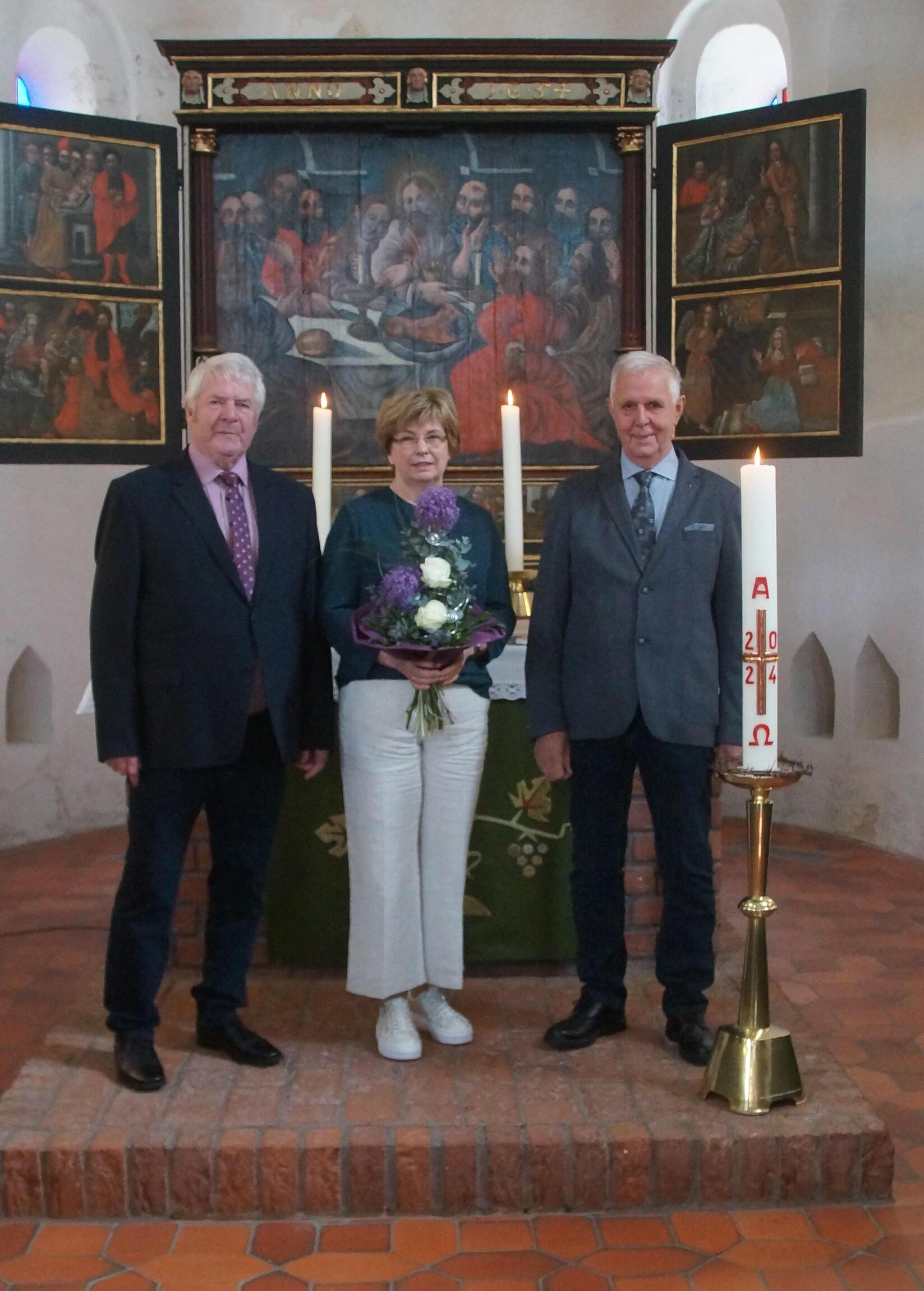 Am 09.06.2024 wurden Jürgen Janßen nach 24 Jahren, Manfred Diener nach 18 Jahren und Helga Hausmann nach 6 Jahren aus dem Kirchenvorstand Strackholt verabschiedet. Die Kirchengemeinde bedankt sich für die jahrelange treue Mitarbeit bei der Leitung der Gemeinde. Unser Bild zeigt von links: